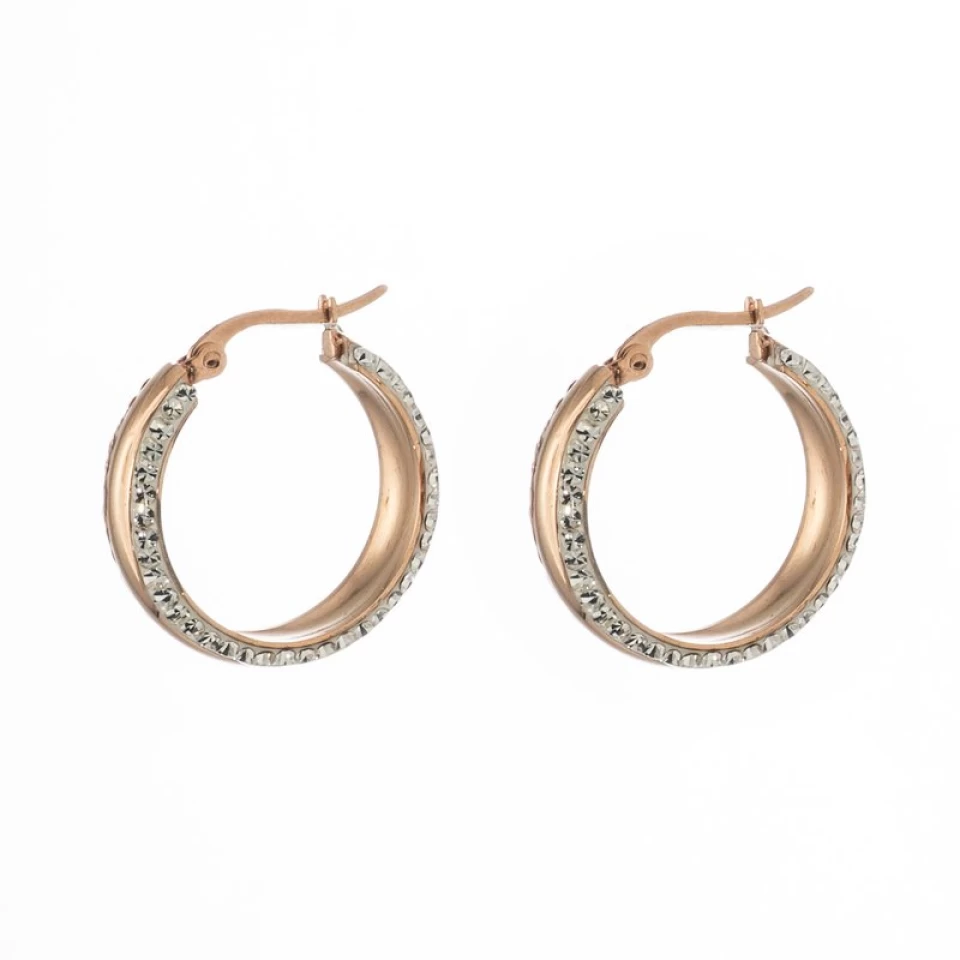 Boucles d’oreilles anneaux en acier inoxydable plaqué rose avec bordure de CZ.