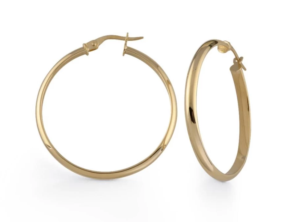 Boucles d’oreilles anneaux polis, en or 10K jaune et d’un diamètre de 30 mm.