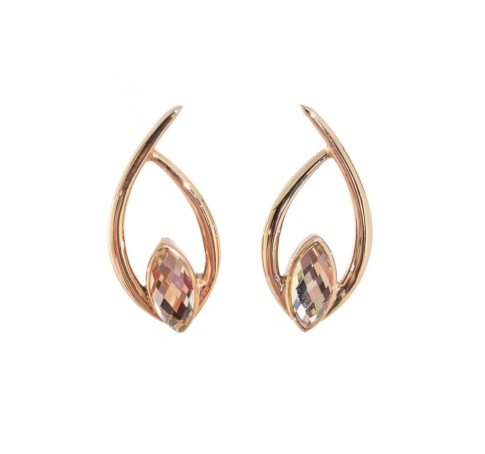 Boucles d’oreilles fixes en acier inoxydable plaqué rose, ovales ajourées avec CZ roses.