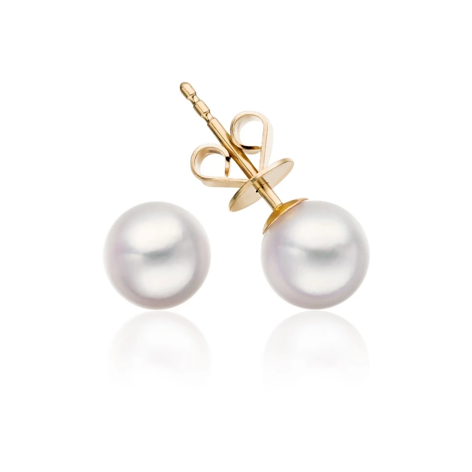 BOUCLES FIXES PERLES AKOYA 6.5-7MM EN OR 14K JAUNE