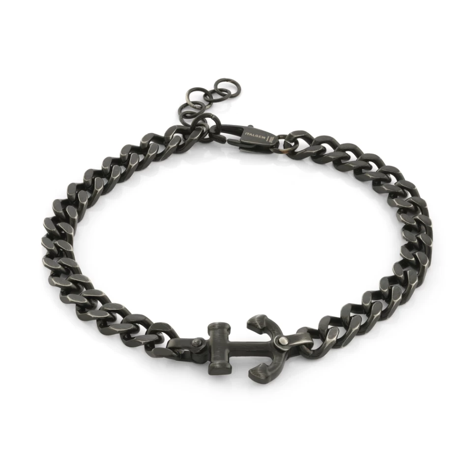 Bracelet gourmette avec ancre de bateau en acier inoxydable plaquĂ© noir, d’une longueur de 7.7+1 pouces.