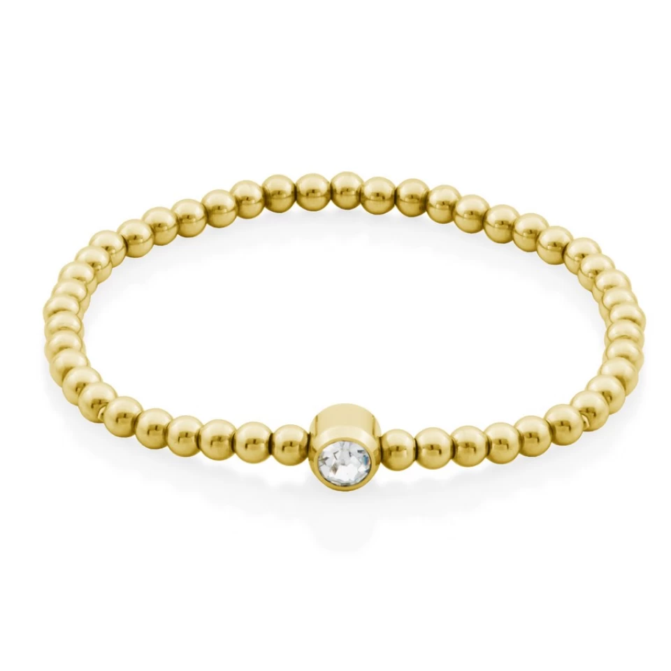 Bracelet Steelx en acier inoxydable plaquĂ© en or jaune, modèle extensible Ă Â billes, d’une largeur de 4 mm et avec un CZ.