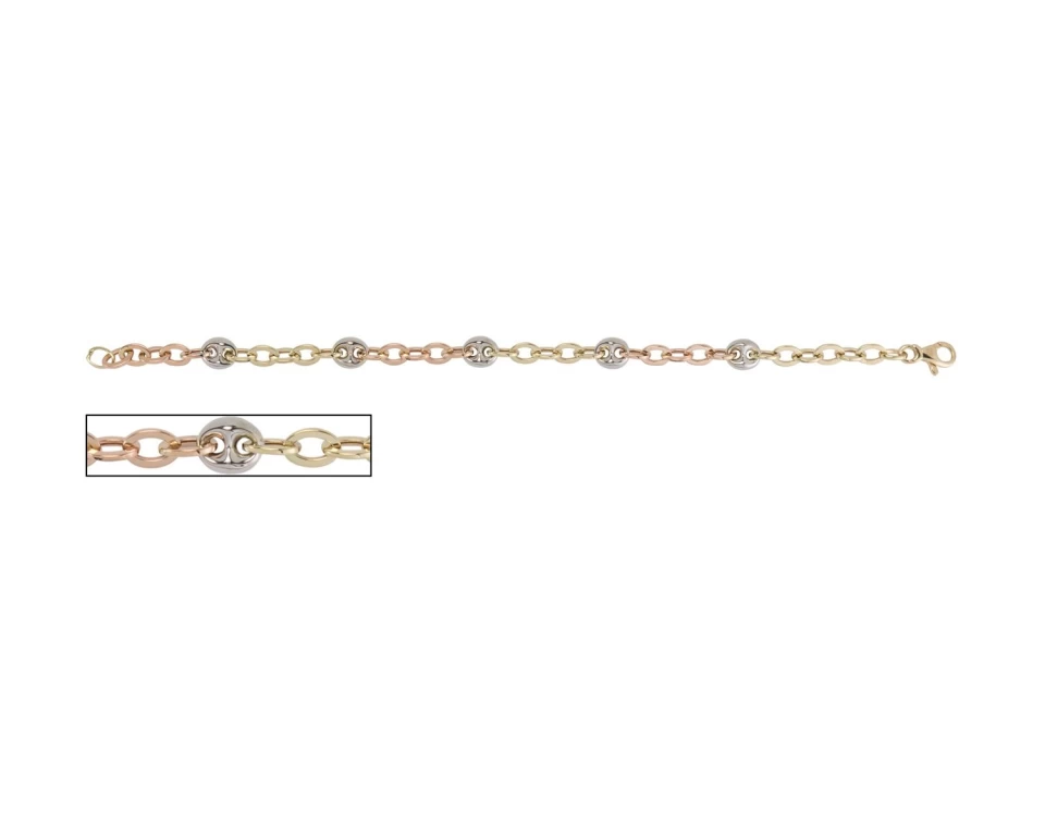 BRACELET MAILLE GUCCI ALTERNÉE EN OR 10K 3 TONS