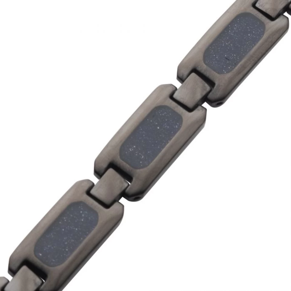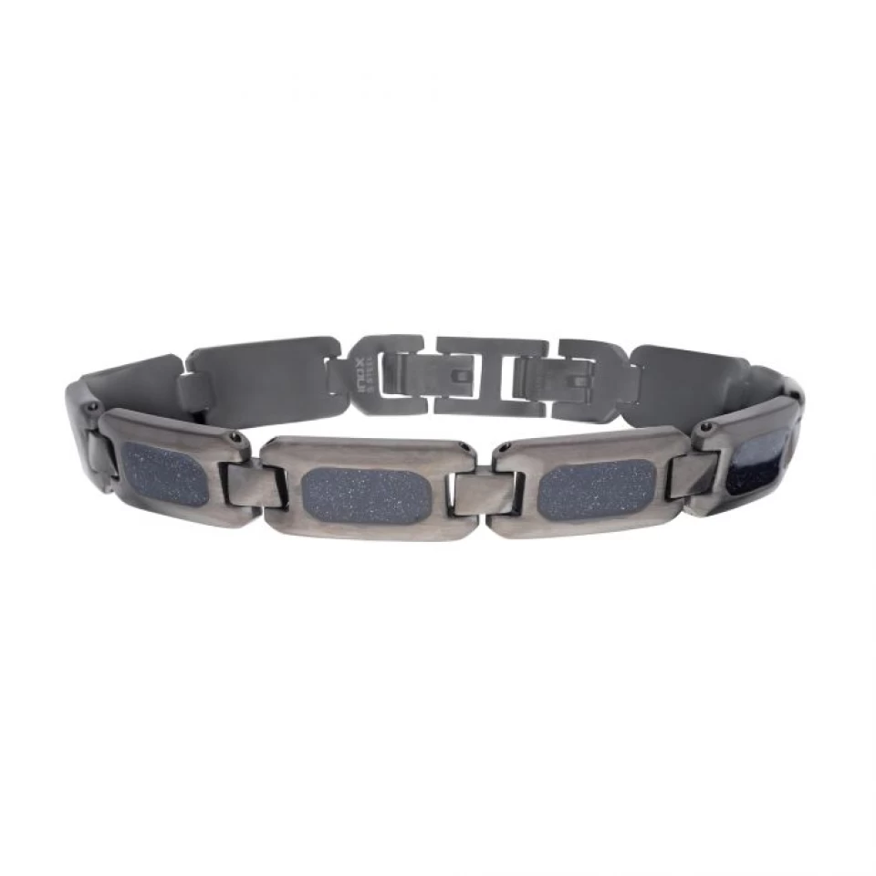 BRACELET SEMI-RIGIDE ACIER GRIS MAT AVEC PIERRE DE SABLE VÉRITABLE