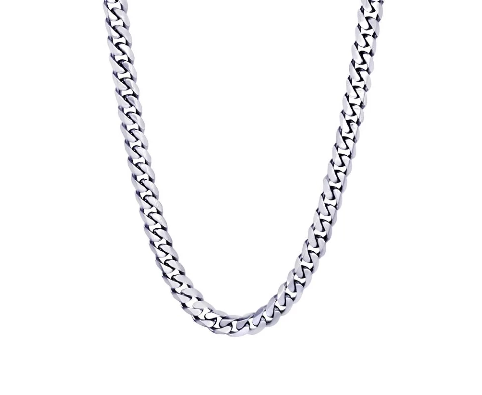 Chaîne gourmette en acier inoxydable polies, d’une largeur de 7.7 mm et d’une longueur de 20 pouces.