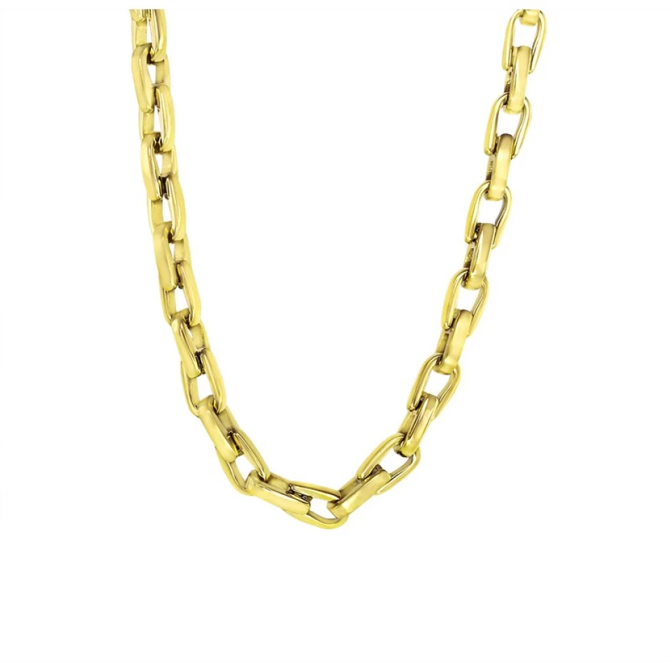 Chaîne fer à cheval en acier inoxydable plaqué en or jaune, à mailles polies et brossées, d’une longueur de 23.5 pouces.