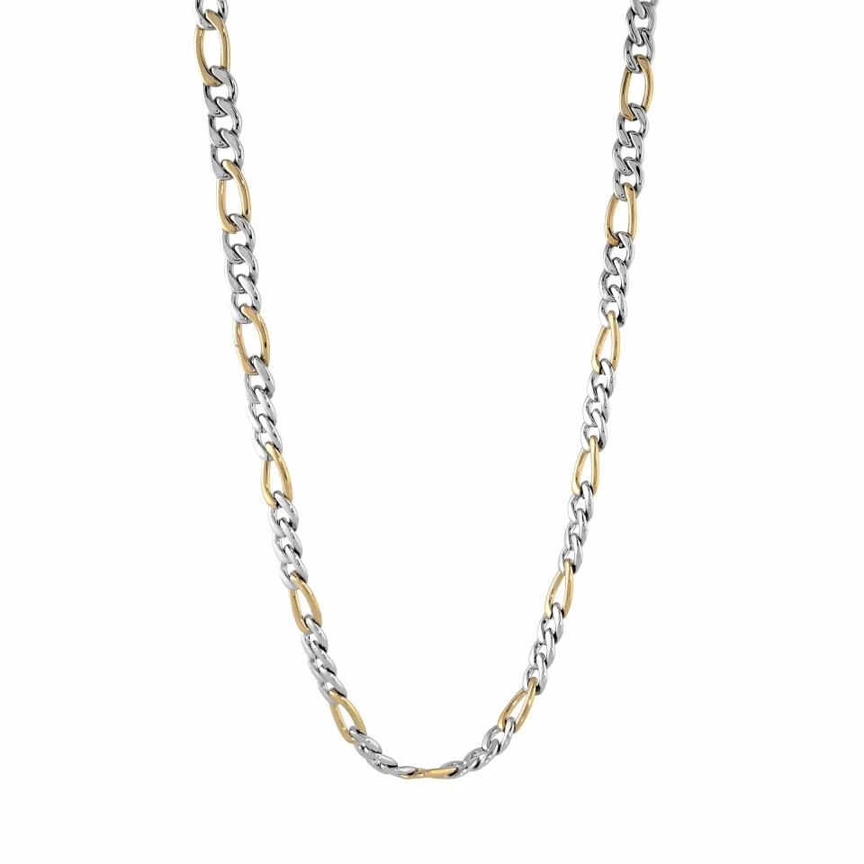 Chaîne figaro polie en acier inoxydable 2 tons, d’une largeur de 6 mm et d’une longueur de 22 pouces.