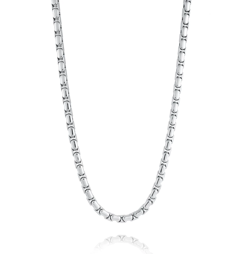 Chaîne à mailles verticales arrondies en acier inoxydable d’une largeur de 14 mm et d’une longueur de 22 pouces.