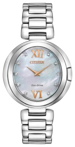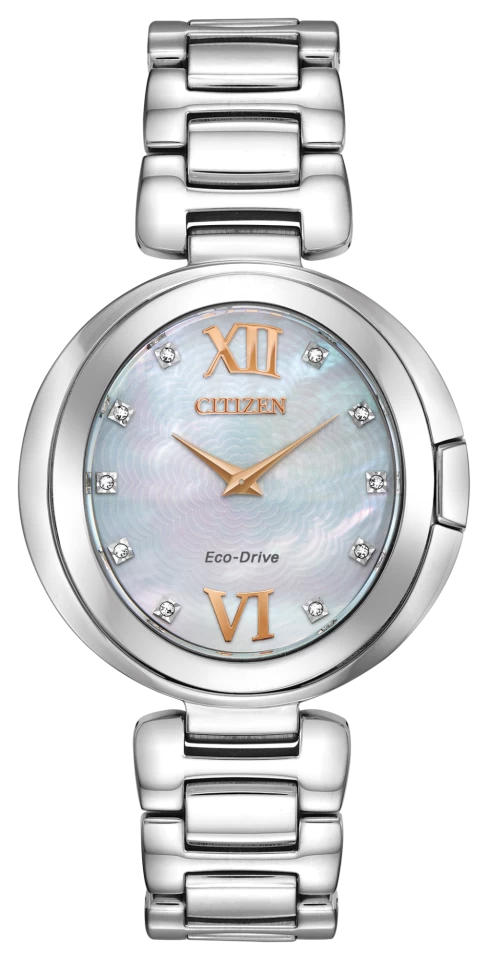 CITIZEN® atteint un nouveau standard moderne avec sa collection Capella. Courbes élégantes, esthétique ininterrompue et expertise technique sont toutes mises en valeur par les montres originales de cette collection. Modèle à diamant montré avec un boîtier et un bracelet en acier inoxydable et un cadran en nacre blanc à couronne intégrée, l’ensemble créant une structure harmonieuse. Doté de la technologie Eco-Drive de CITIZEN et alimenté par la lumière, sous toutes ses formes. N’a jamais besoin de pile.