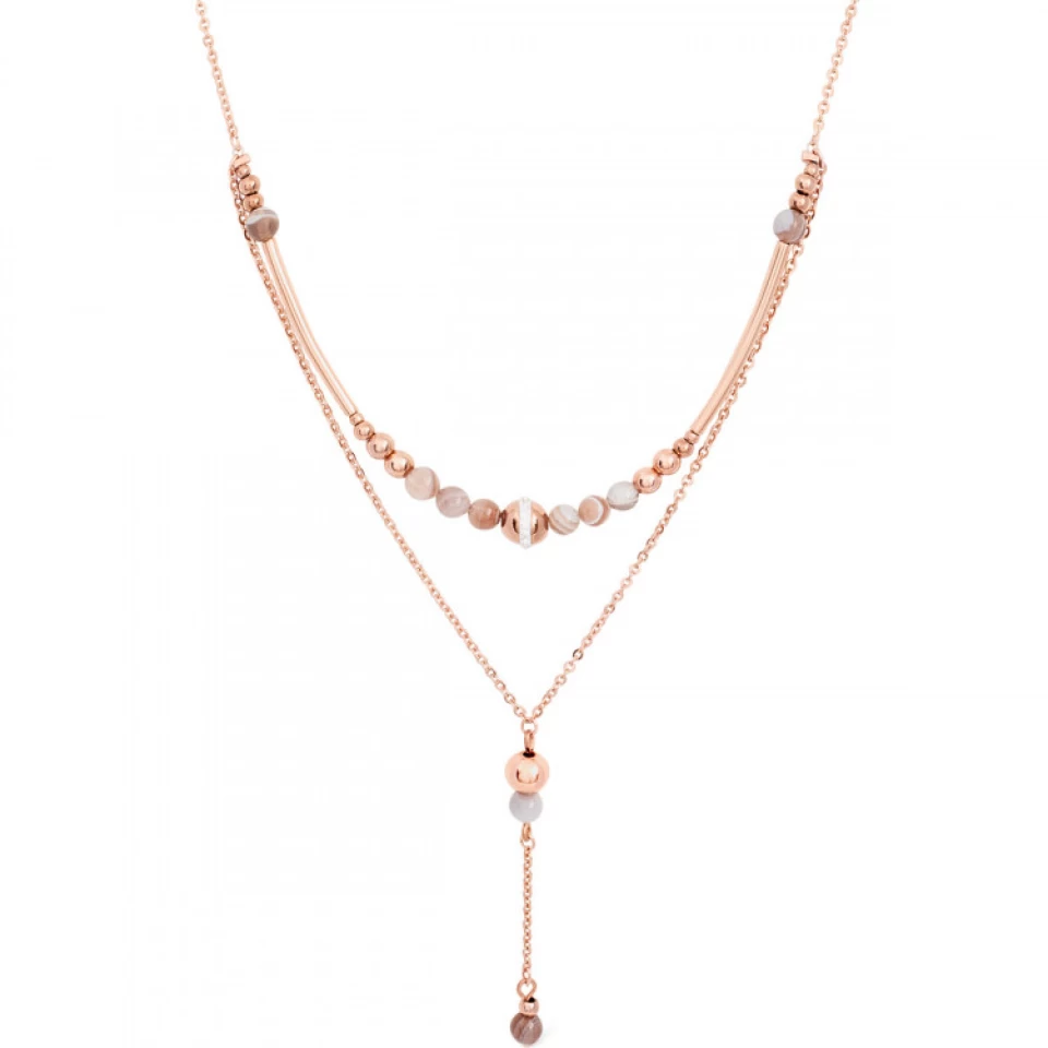 Coeur De Lion COLLLIER 2 RANGS ACIER PL ROSE BILLES MULTI CZ