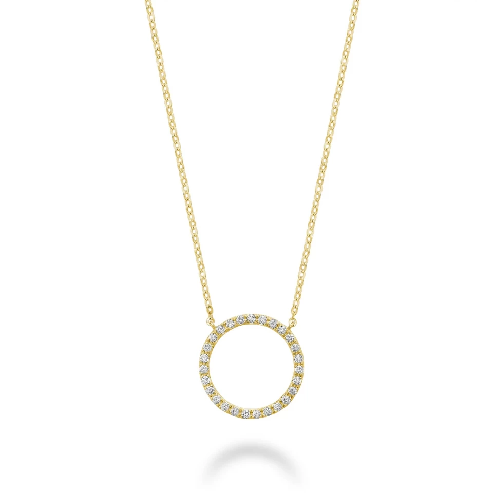 Un collier centre cercle ajouré serti de 27 diam=0.20ct, pureté SI et I, couleur H-I, en or 14k jaune, longueur de 17.75″