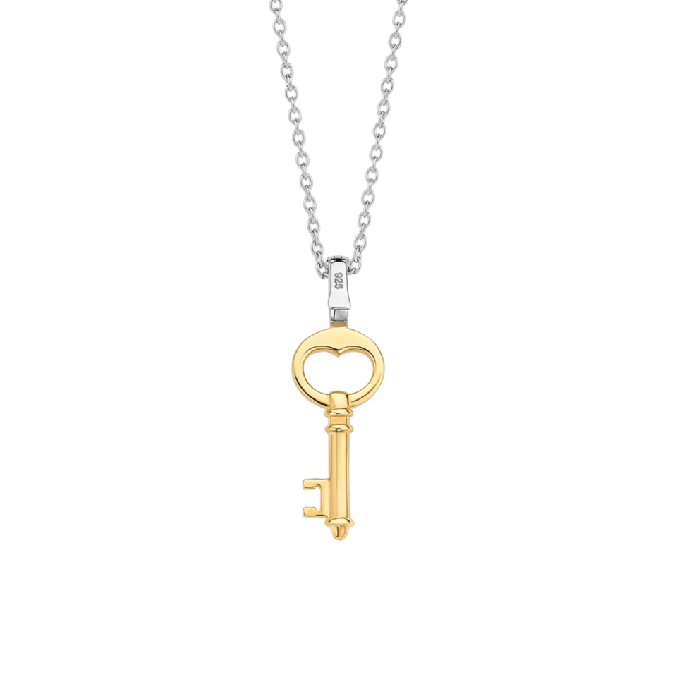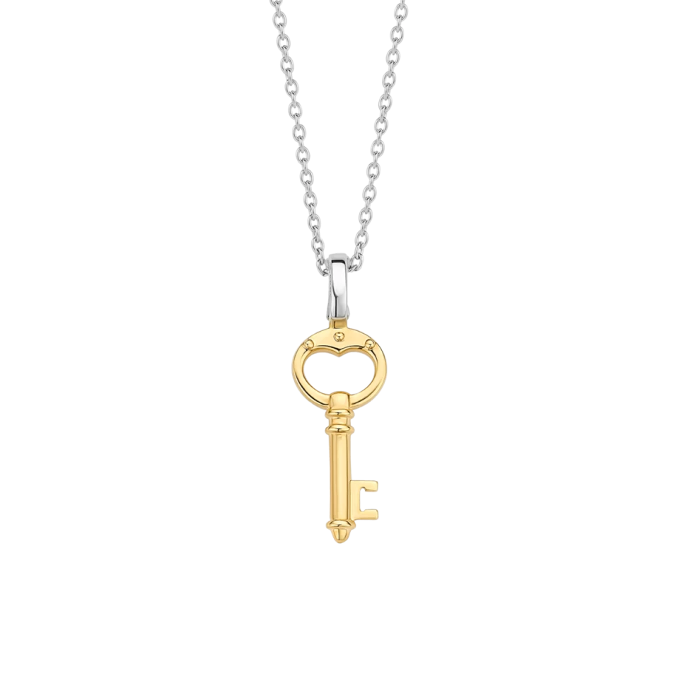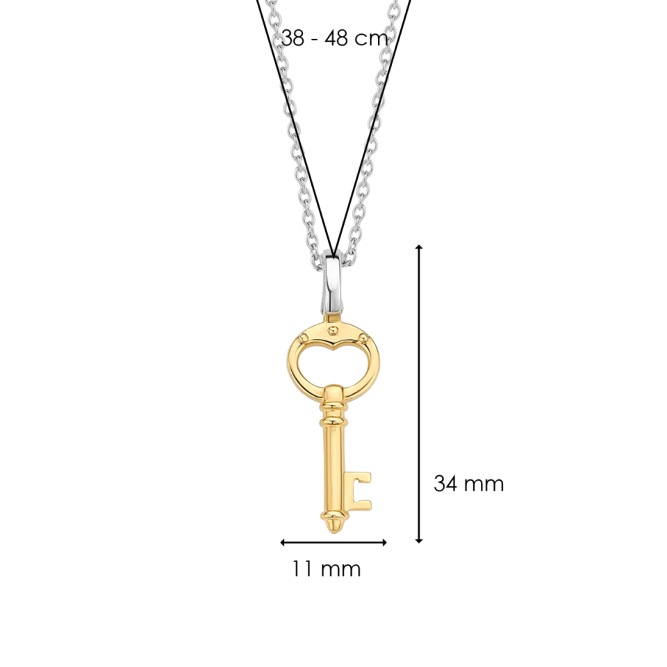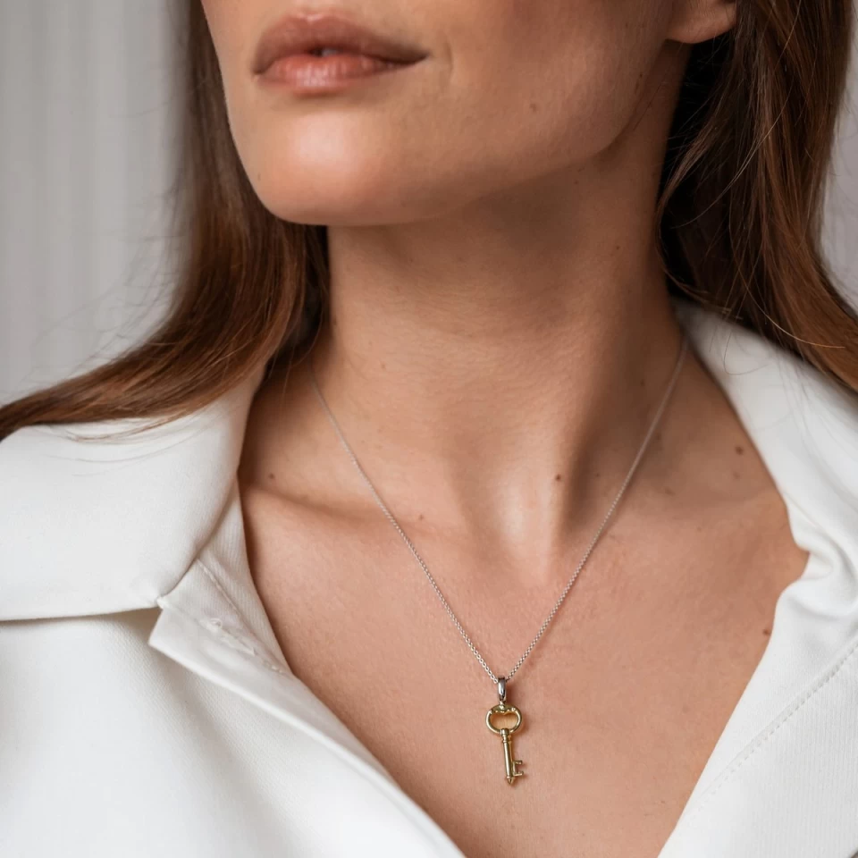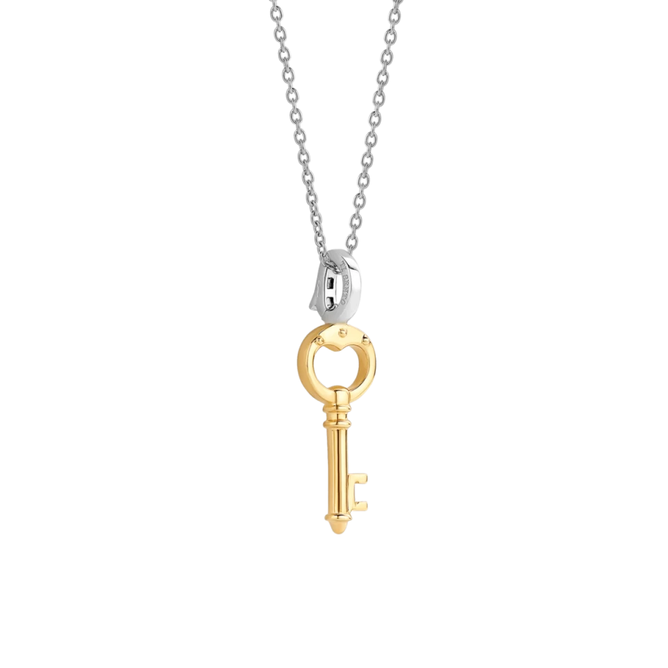 Collier composé d’une chaîne en argent de 45 cm de longueur et d’une clé en guise de pendentif en argent plaqué 2 tons en 18k jaune.