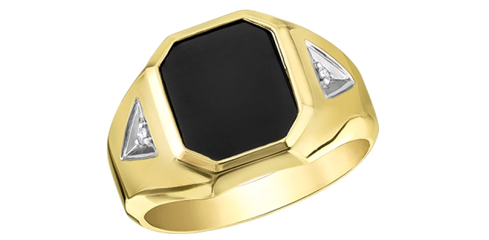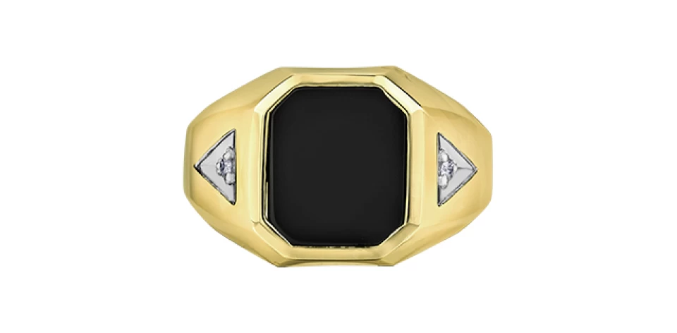 Corona BAGUE CHEVALIÈRE ONYX 12X10MM 2 DIAMANTS=0.03CT I HI 10K JAUNE