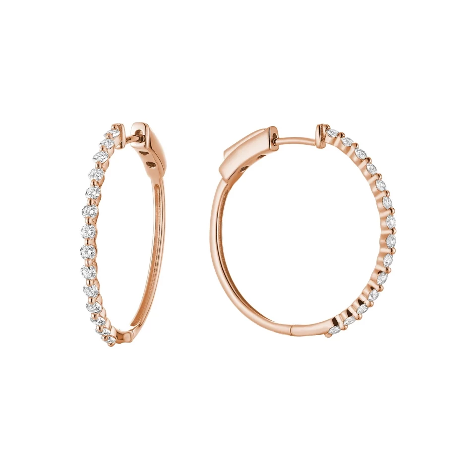 Une paire de huggies en or 14k rose mesurant 26.0mm de diamètre, sertis de 28 diamants totalisant 0.70ct, pureté SI et I, couleur G-H.