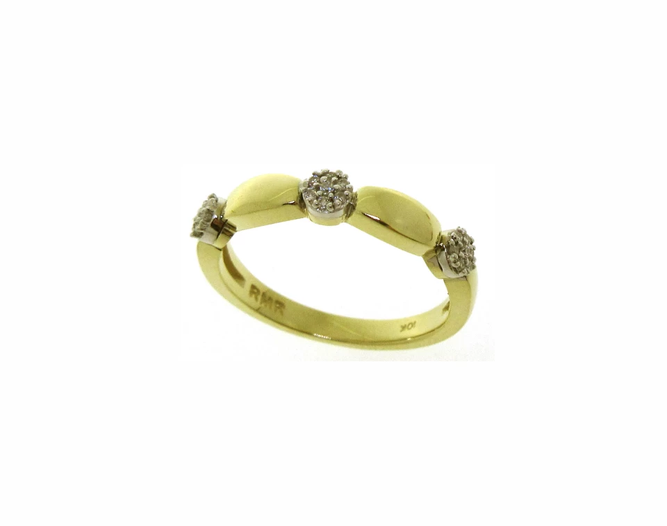 Un jonc de fantasie fait en alternance de motif uni et poli et trois sections rondes à diamants, 21 diamants (7 sur chaque section ronde) totalisant 0.09ct, pureté SI, couleur G-H en or 14k deux tons.