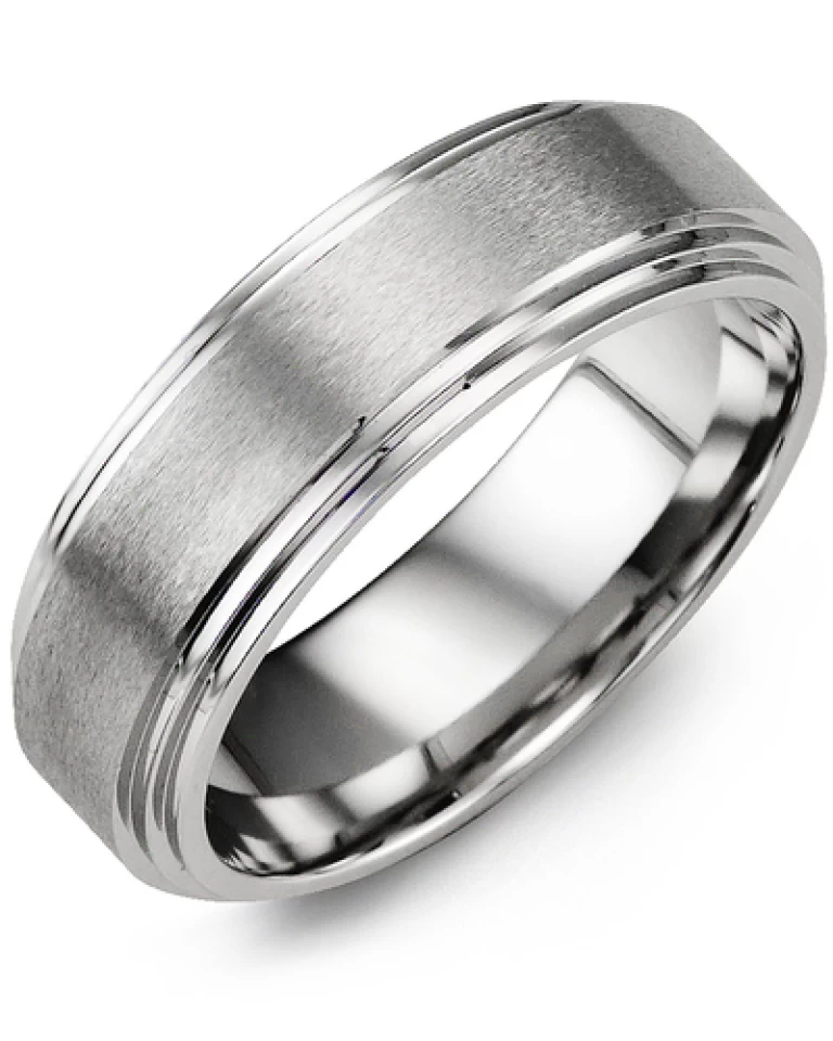 Une des alliances pour hommes les plus joliment sobres, ce mélange de cobalt poli et brossé est pour les véritables icônes de style. La bande de 7 mm a plusieurs couches de cobalt poli, jusqu’à la couche supérieure de cobalt brossé. Ce bijou fait tourner les têtes.