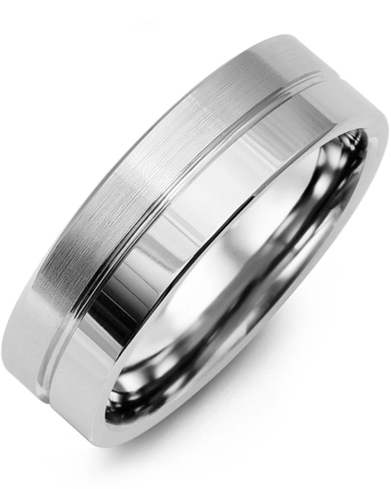 JONC MOITIÉ BROSSÉ ET POLI 7MM OR 10K BLANC
