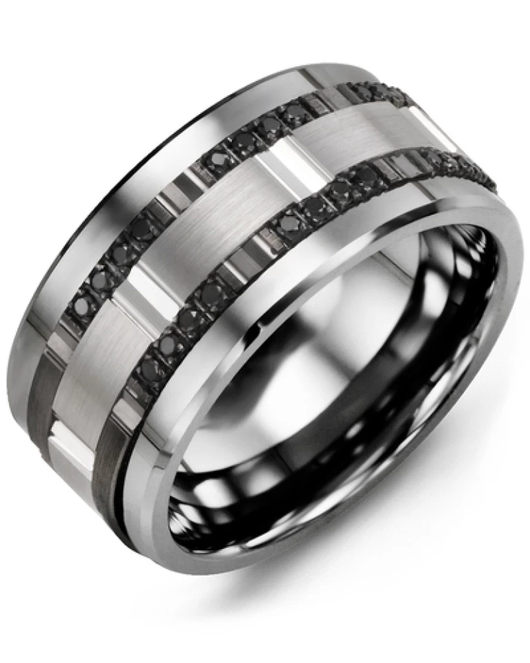 Jonc en tungstène de 11 mm serti de 24 diamants totalisant 0.24ct dans 2 insertions en or blanc fini au rhodium noir de part et d’autre du centre en or blanc 10k, créant ainsi un style moderne et contrasté. Ce jonc est disponible, autre que celui en inventaire, sur commande, en options de largeur, de couleurs et karats d’or 10kt, 14kt ou 18kt et peut être gravée à l’intérieur si vous souhaitez le personnaliser.