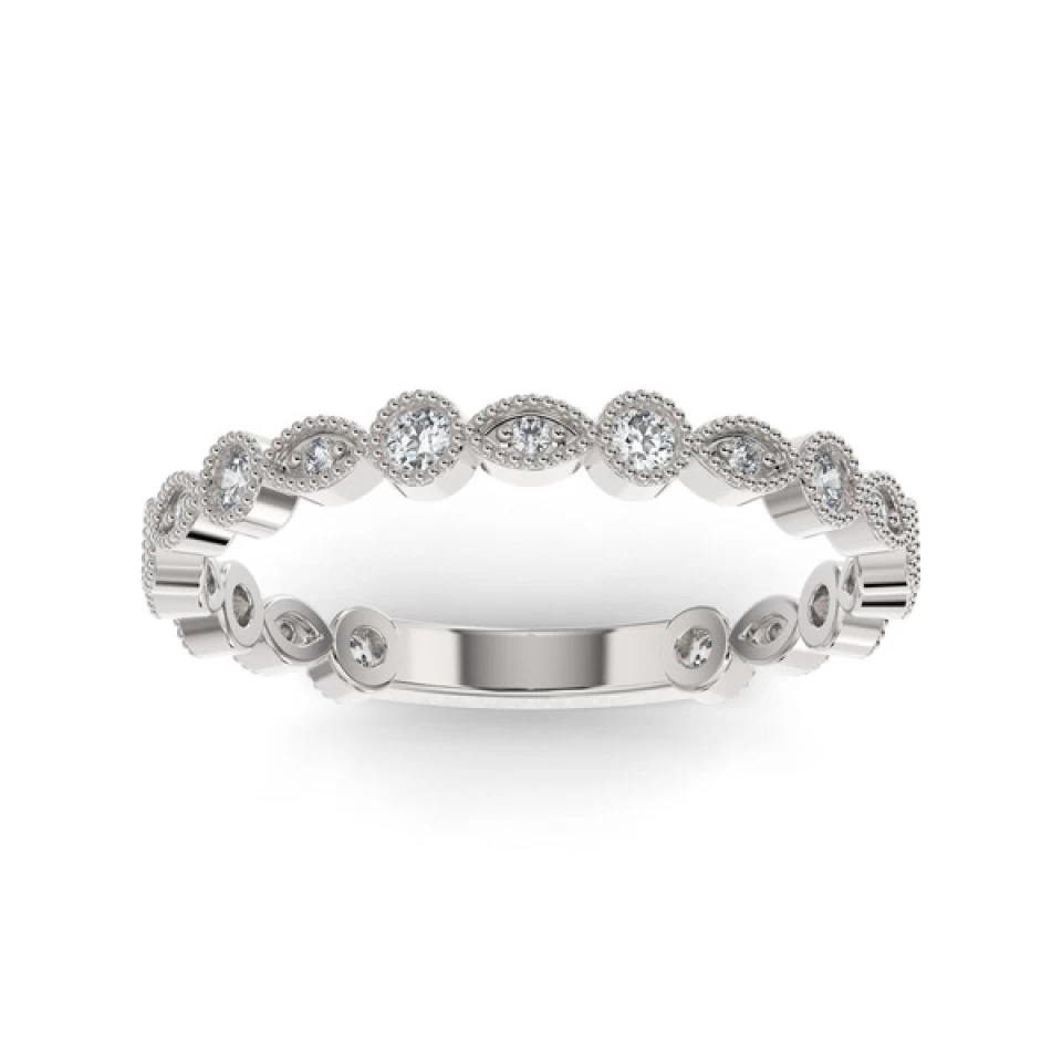 MALO JONC EMPILABLE ALTERNANCE ROND ET MARQUISE 15 CZ OR 10K BLANC