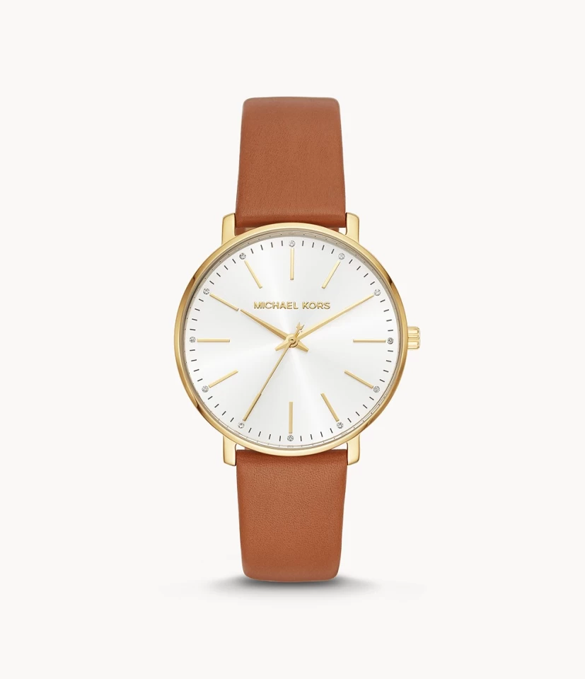 MONTRE MICHAEL KORS CUIR BRUN FACE BLANC