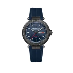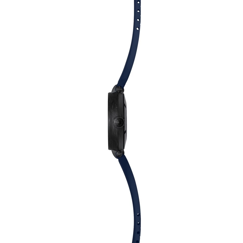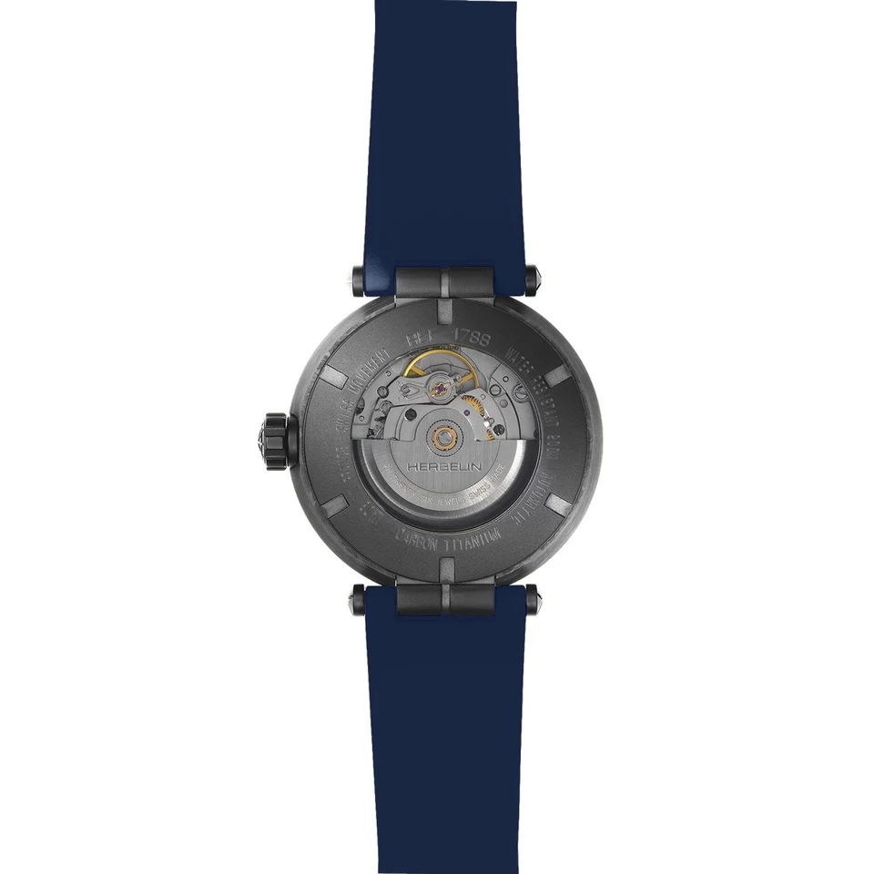 Newport Titane Carbone Automatique se présente dans un diamètre de 43 mm et d’une épaisseur de 12,45 mm. Entièrement construite en carbone forgé, cette montre est robuste et ultrarésistante. Le fond de boite en titane DLC s’avère être vissée et vous offre la possibilité d’admirer son mouvement automatique grâce à son verre transparent. Le cadran bleu nuit représente les fonds marins de la baie de Saint-Malo. Cette montre est habillée d’un bracelet FKM bleu garanti 10 ans.