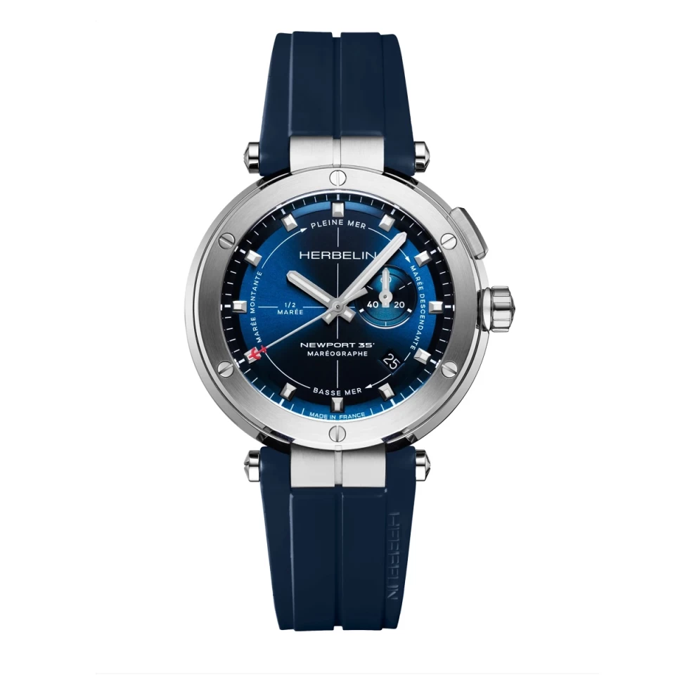 Découvrez la nouvelle édition spéciale du Newport maréographe, une montre de la collection Herbelin conçue pour célébrer les 35 ans de la gamme. Cette montre allie robustesse et sophistication pour un style intemporel et élégant. Avec un diamètre de 43 mm, elle offre une présence imposante au poignet tout en conservant une apparence subtile et raffinée grâce à son profil de 10,65 mm de hauteur. Le bracelet en cuir de haute qualité, muni d’une boucle déployante, assure un confort optimal. Pour les amateurs de montres à la recherche d’un style intemporel et élégant, cette montre est un choix ultime.