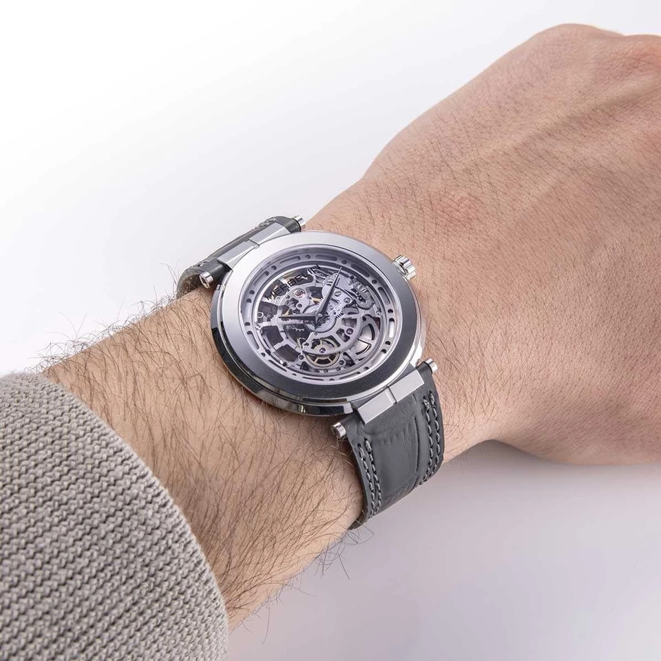 La collection Newport Slim s’agrandit avec cette nouveauté. Dévoilant sans complexe son mouvement mécanique, cette montre à l’esprit moderne et élégante est habillée d’un bracelet en cuir façon alligator noir s’accordant à merveille à l’acier du boitier. Découpé en trois facettes minutieusement ciselées, la finition polie du boitier sculpte la lumière. Ce garde-temps est issu d’un savoir-faire horloger traditionnel français.