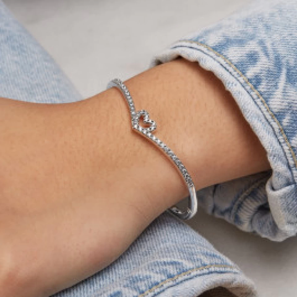 Pandora BRACELET RIGIDE CHEVRON ET COEUR SCINTILLANT CZ