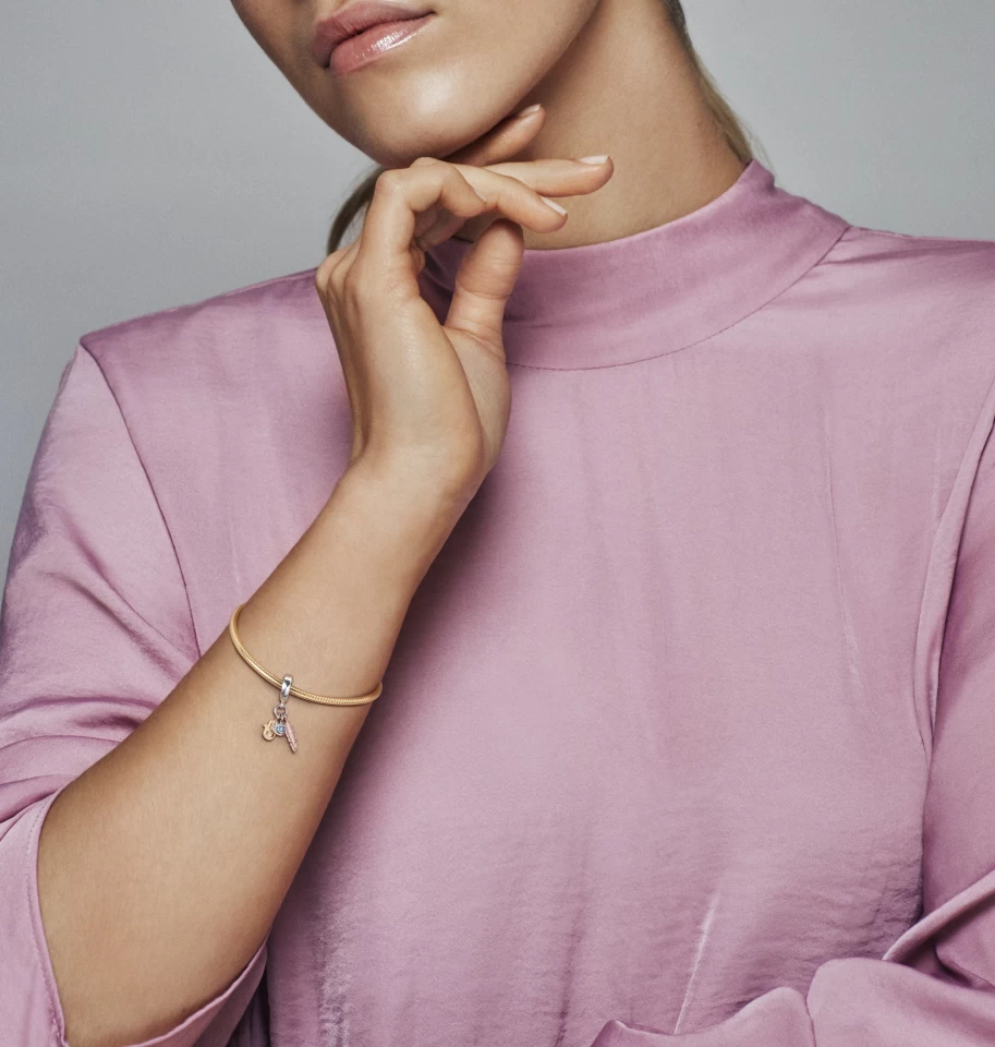 Montrez que vous êtes une vraie citoyenne du monde avec la breloque constituée d’une main Hamsa, d’un œil qui voit tout et d’une plume. Attirez la protection de ces symboles en portant ce charm en trois teintes, le Pandora Shine (un mélange unique de métal plaqué d’or 18 K), le Pandora Rose (un mélange unique de métal plaqué d’or rose 14 K) et l’argent sterling. Orné de zircones cubiques scintillantes et de détails en émail bleu sur l’œil qui voit tout, ce charm est inspiré d’une spiritualité inclusive qui marie différentes croyances.