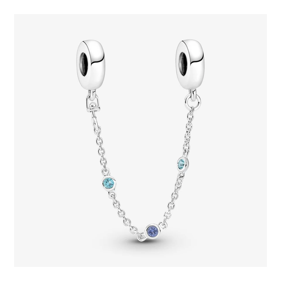 Pandora CHAINE DE SURETÉ TROIS PIERRES BLEUES