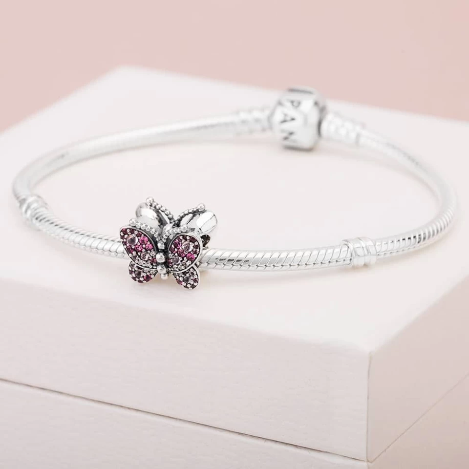 Canalisez le pouvoir transformateur du papillon avec ce charm rose. Serti de cristaux taille cabochon et de pierres de zircone cubique aux teintes ton sur ton, l’argent sterling fait une pièce maîtresse scintillante sur tout bracelet à breloques Pandora Moments. Portez-le dans le cadre de votre histoire de style, mettant en valeur tout ce que vous aimez et laissez les tons roses ajouter une touche de couleur à votre look.