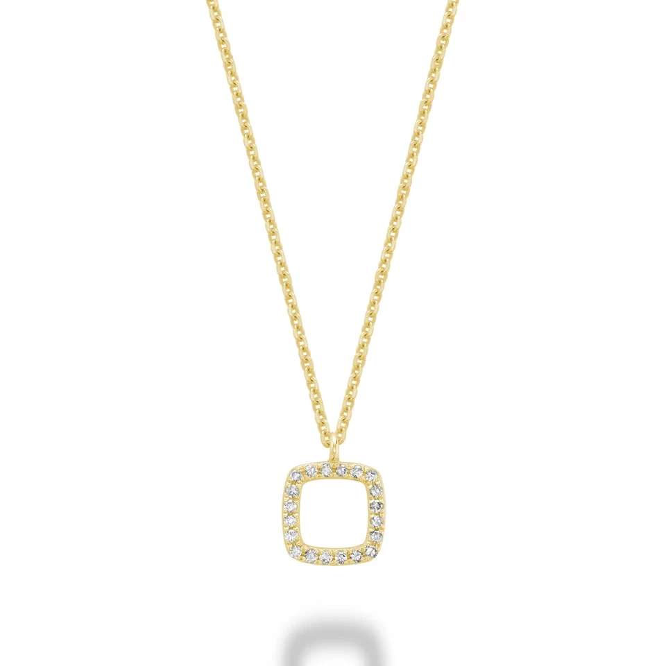 PENDANT ET CHAÎNE CARRÉ ARRONDI 20 D S/C=0.06CT SI GH 14KJ 18″