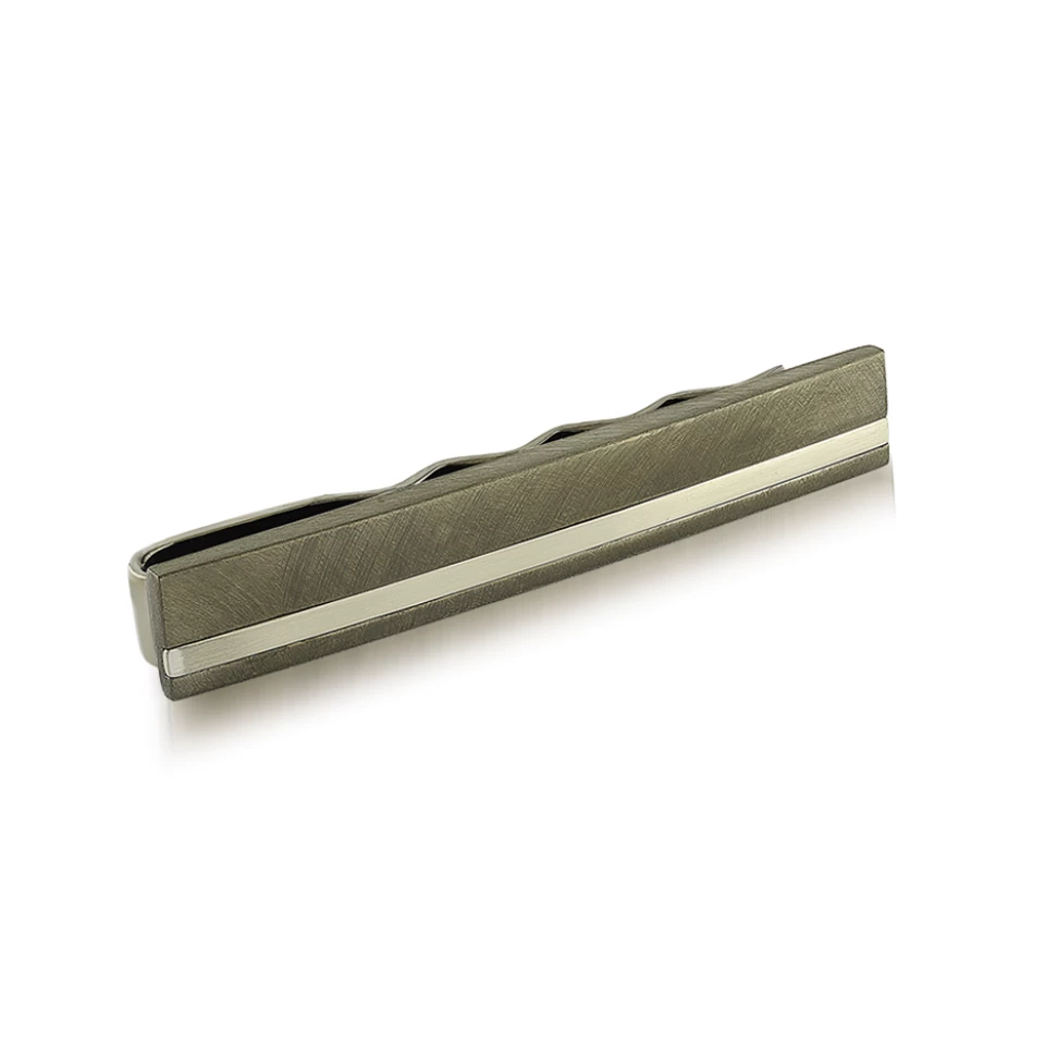 Pince à cravate en acier inoxydable, texturée et brossée.