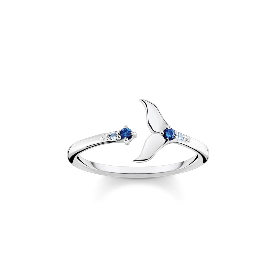 Bague ouverte pour femmes, en argent sterling 925 poli à la main : nageoire caudale de dauphin stylisée