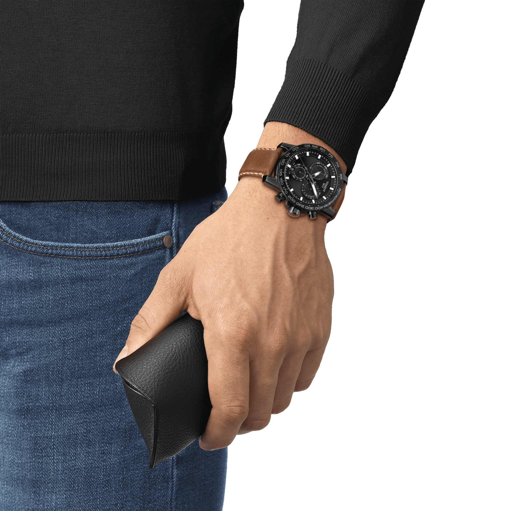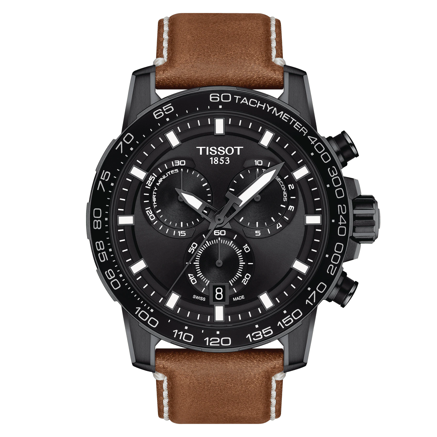 En hommage aux valeurs universelles du rugby, qui se joue sur tous les continents par des hommes et des femmes de toutes origines et nationalités, la collection SuperSport Chrono se décline dans une grande variété de teintes. Cette montre acier est équipée d’un chronographe à quartz de 30 minutes avec fonctions split et rattrapant. Le cadran noir est orné de trois sous-cadrans, d’aiguilles et d’index lumineux et un guichet de date à 6 heures. Le bracelet de cuir brun à surpiqures et boucle ardillon offre un agréable contraste de tons.